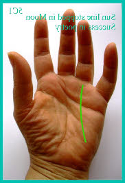 Linia Soarelui este paralela cu linia destinului si incepe sub inelar. Aceasta linie indica daca peroana va fi faimoasa si daca este implicata in scandaluri de anvergura.